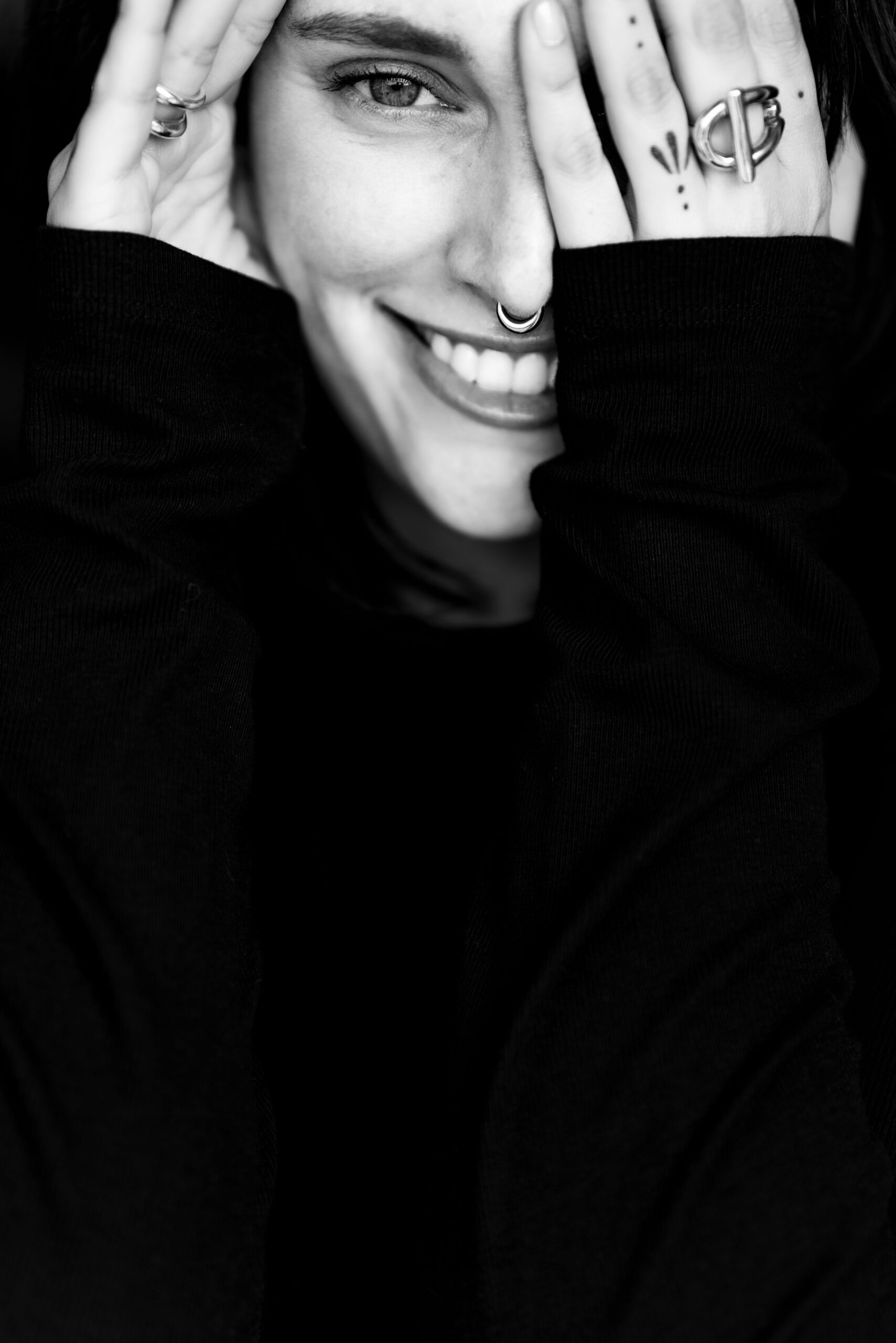 „Oha, ich muss lachen fürs Bild. Aber als ich letztes Mal gelacht habe, sah das Bild total blöd aus.“